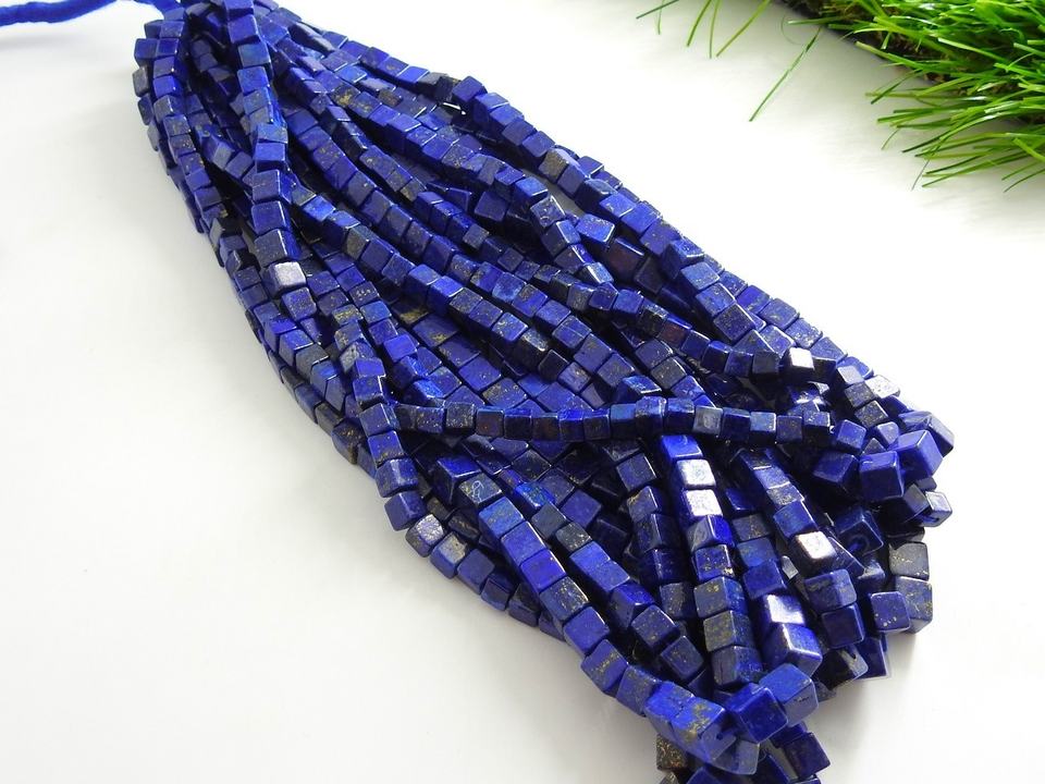 Lapis Lazuli กล่องทรงลูกบาศก์ขัดเงาแบบเรียบลูกปัดทรงหลวม16นิ้วหินอัญมณีแฮนด์เมดสำหรับทำเครื่องประดับหินธรรมชาติ