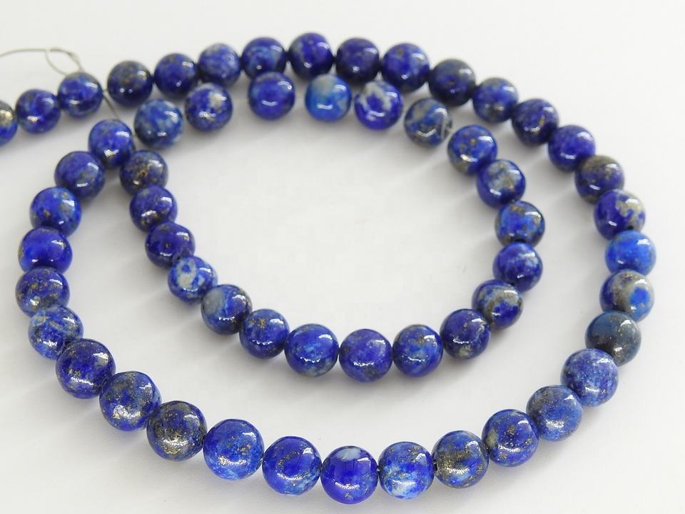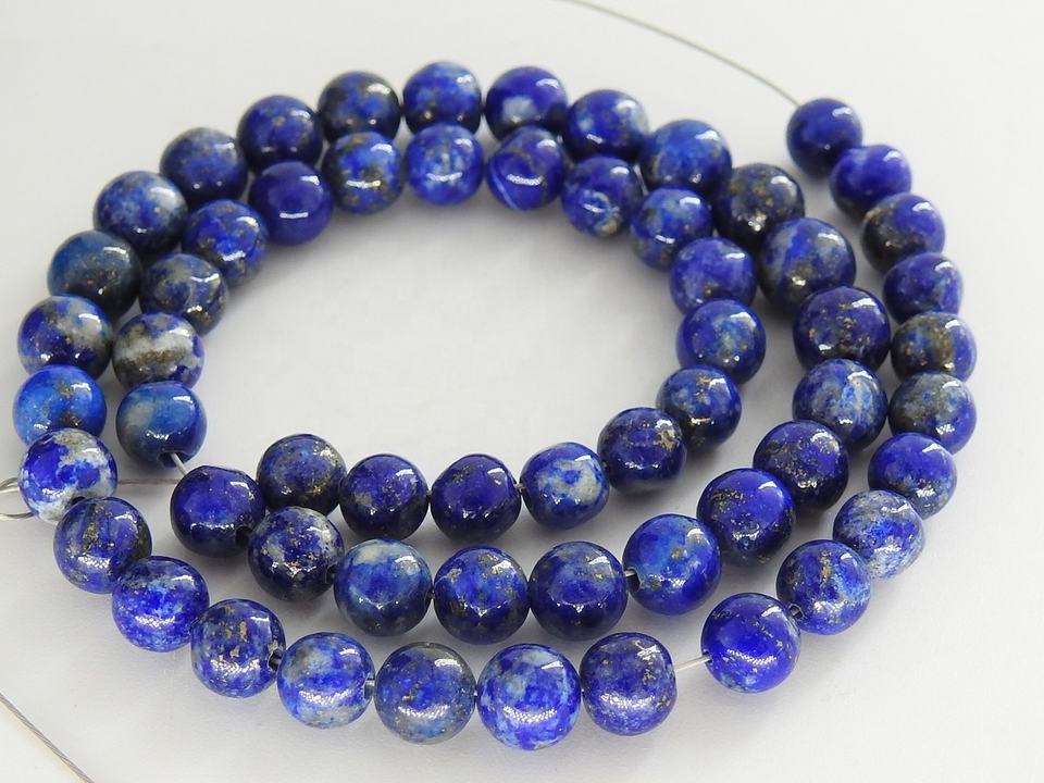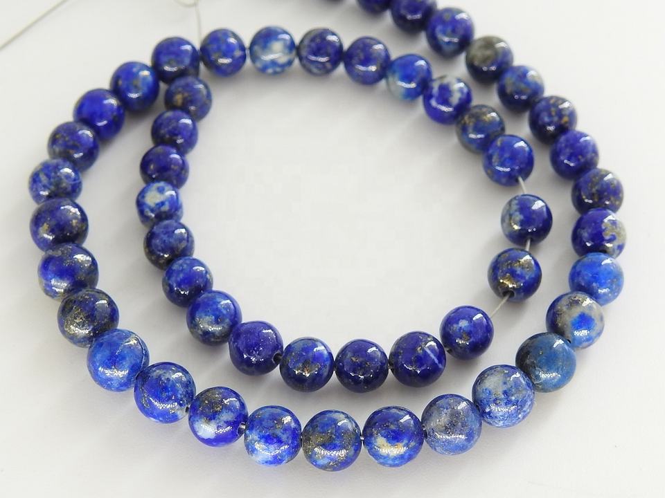ลูกปัดทรงกลมกลมเรียบ4มม. สีฟ้า Lapis Lazuli สำหรับการทำเครื่องประดับ