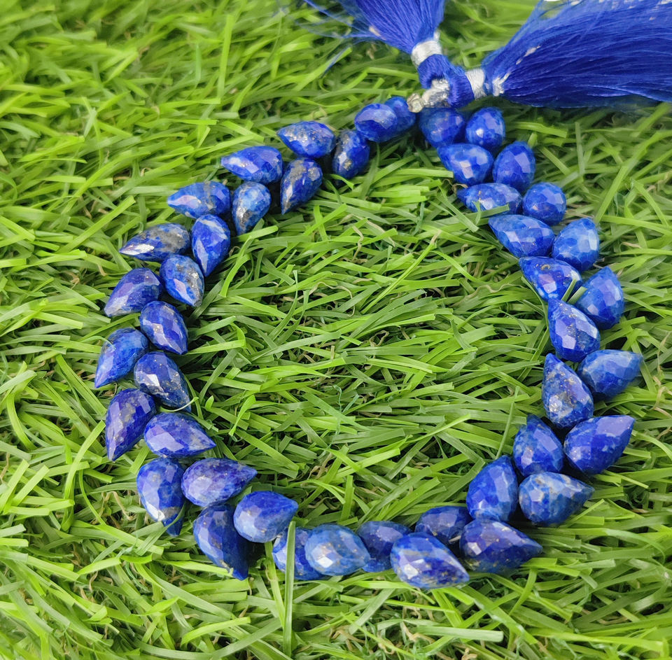 Lapis Lazuli ลูกปัดพลอย briolette เหลี่ยมเพชรพลอยขนาด12x7มม. ขนาด8นิ้วอุปกรณ์ทำเครื่องประดับเส้นยาว
