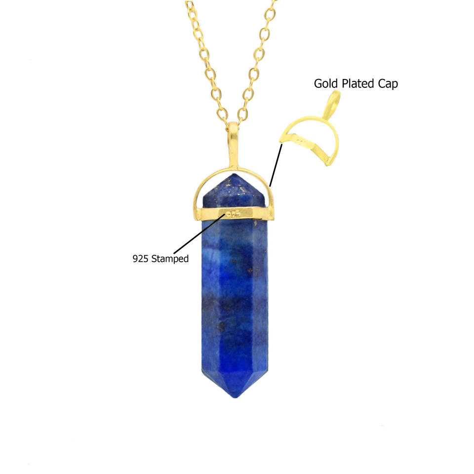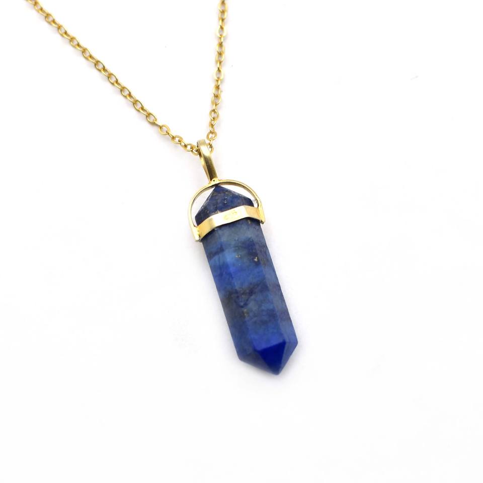 สร้อยคอทรงดินสอประดับลาพิส ลาซูลี ตัวเรือนทอง สร้อยคอแบบมีเอกลักษณ์ เครื่องประดับอัญมณี ของขวัญสำหรับเธอ