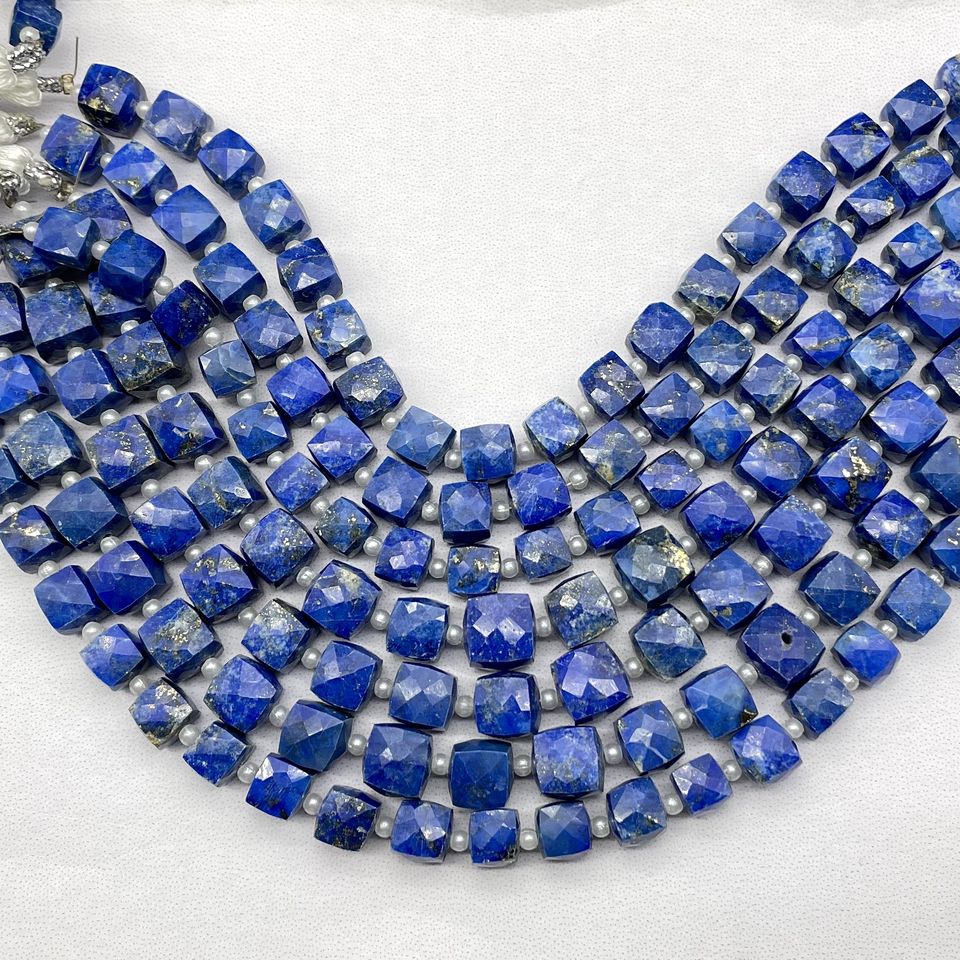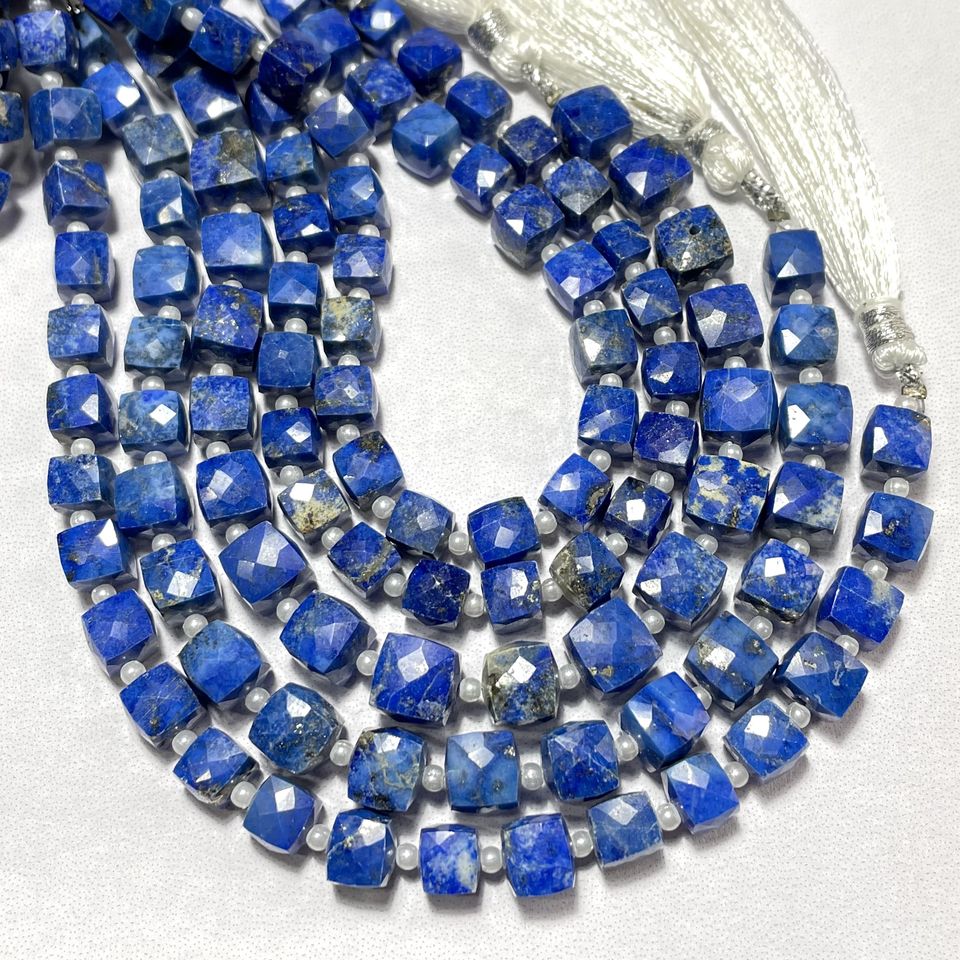 Lapiz Lazuli ลูกปัดรูปทรงกล่องเหลี่ยมเพชรพลอยธรรมชาติขนาด7-8มม. สำหรับอุปกรณ์ลูกปัด