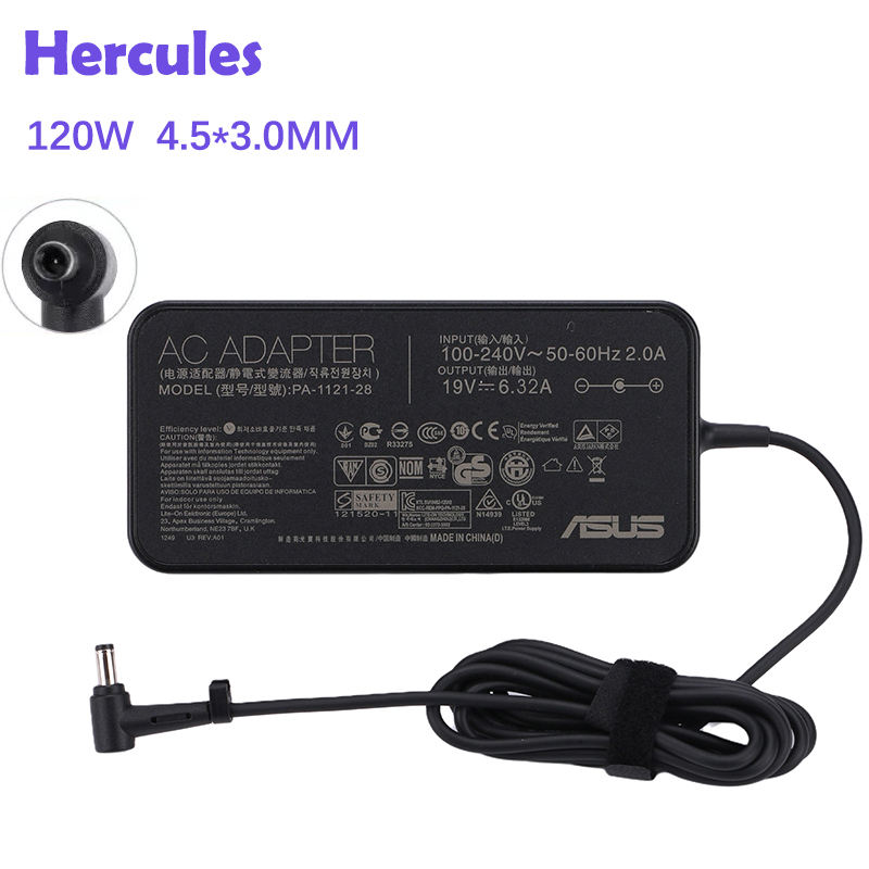 อะแดปเตอร์ชาร์จแล็ปท็อป/แหล่งจ่ายไฟ AC ทรงสี่เหลี่ยมสำหรับ Asus 120W 19V/6.32A 4.5*3.0มม. PA-1121-28 ADP-120RH B ROG Strix GL553VD