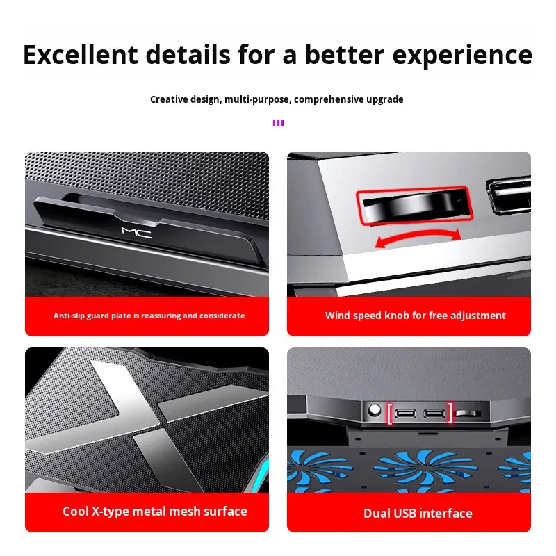 แท่นทำความเย็นแล็ปท็อปต้นแบบแท่นทำความเย็นเชิงกลสำหรับเล่นเกมแล็ปท็อปพับได้ฐานทำความเย็นโลหะแผ่นทำความเย็นระบายความร้อนด้วยอากาศ