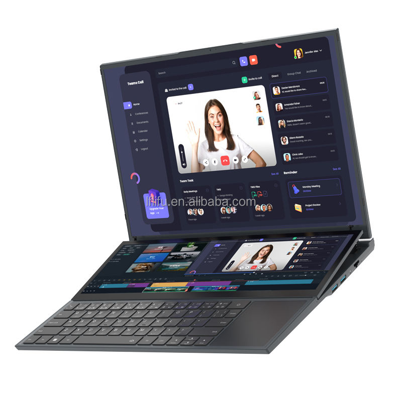 แล็ปท็อปหน้าจอสัมผัสคู่ OEM/ODM ยี่ห้อ 16 นิ้ว + 14 นิ้วหน้าจอ 16GB RAM แล็ปท็อป Core i9 2023 จอแสดงผลคู่แล็ปท็อป