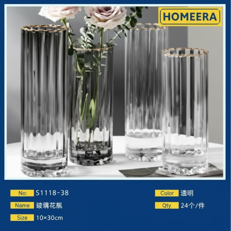 แจกันแก้วบอโรซิลิเกตทรงสูงขนาด10X30ซม. แจกันแก้วบอโรซิลิเกตดีไซน์คลาสสิกสำหรับตกแต่งบ้านงานแต่งงานแจกันดอกไม้