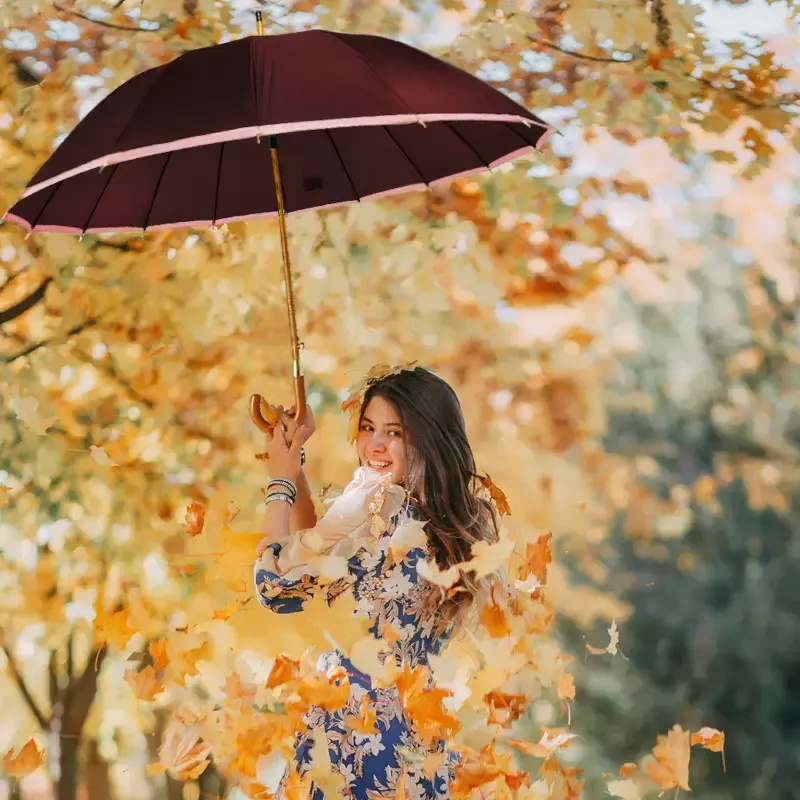 ร่มกันลมอัตโนมัติบอร์โดซ์ขนาดใหญ่112ซม. พร้อมที่จับไม้อุปกรณ์เสริมสำหรับผู้ชายและผู้หญิง