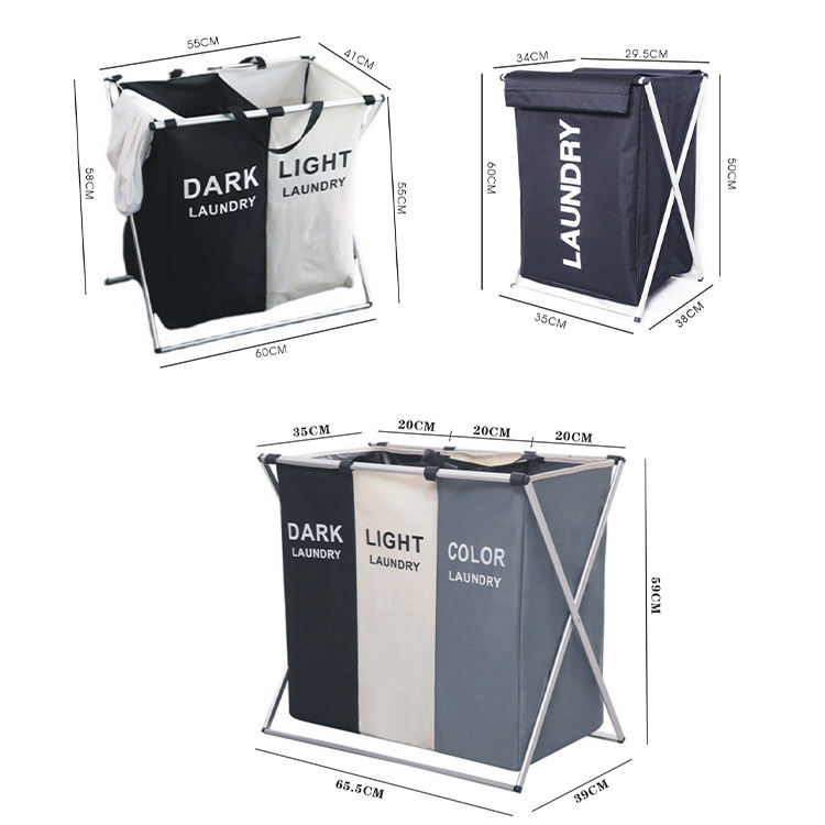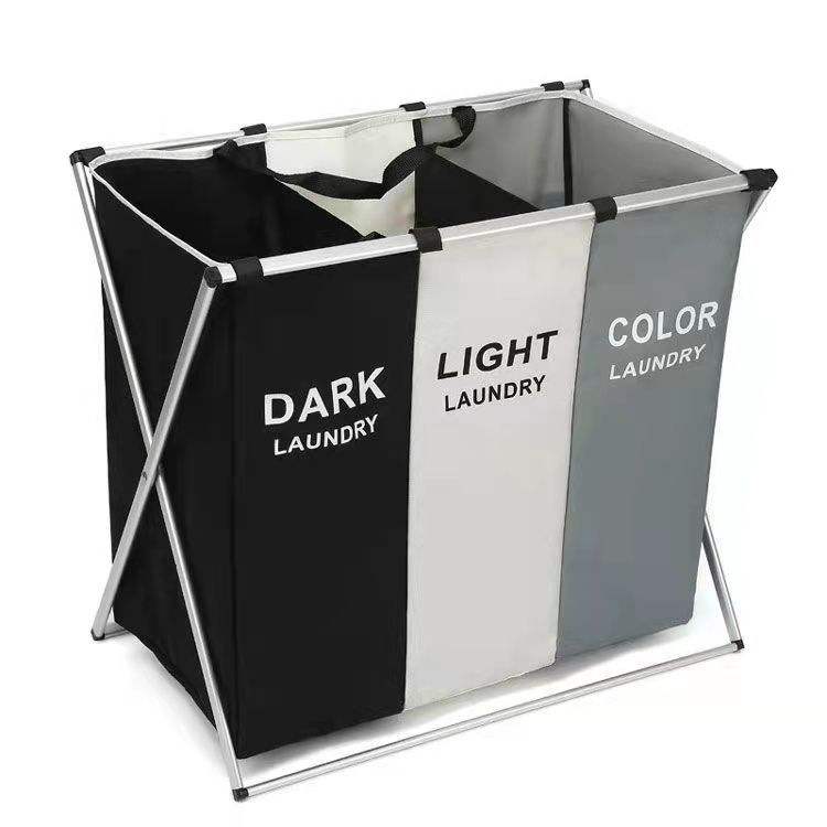 ตะกร้าผ้าขนาดใหญ่ 3 ช่อง แบบตั้งพื้น สำหรับใส่ผ้าสกปรก ตะกร้าเก็บผ้า ตะกร้าซักผ้า และถุงใส่ผ้า