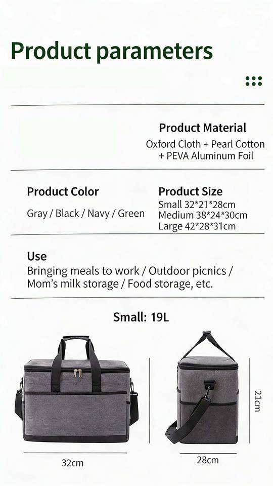 กระเป๋าเก็บความเย็นขนาดใหญ่ 35 ลิตร พร้อมชั้นฉนวน PEVA อะลูมิเนียม สำหรับแคมป์ปิ้ง ท่องเที่ยว ปิกนิก เก็บนมและอาหาร