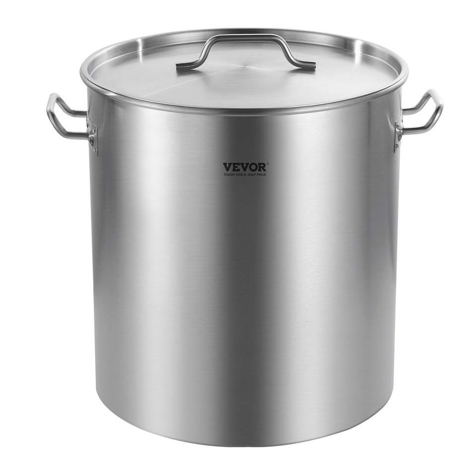 หม้อสต็อกสแตนเลสขนาดใหญ่ 54 ลิตร สำหรับงานหนัก เกรดเชิงพาณิชย์ สำหรับทำซุปและน้ำสต๊อก พร้อมฝาปิด หูจับ และตะกร้าสำหรับใส่ซอส