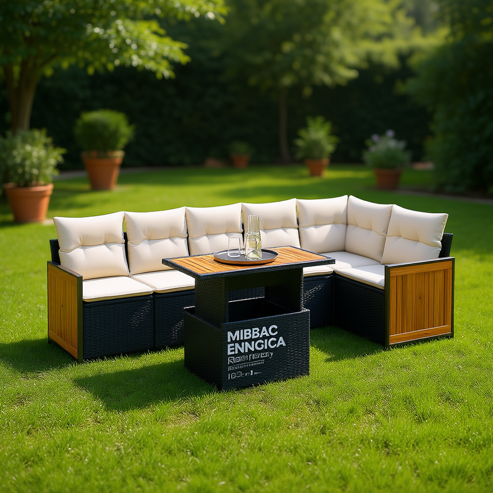 ชุดโซฟาสนาม Mibbac Enngica 6 ที่นั่ง วัสดุหวาย PE โครงไม้เนื้อแข็ง ดีไซน์ร่วมสมัย ขาปรับระดับได้