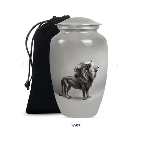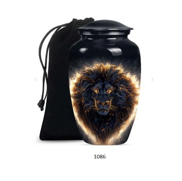 โกศบรรจุอัฐิขนาดใหญ่ รูปสิงโต ทำจากอะลูมิเนียม สำหรับผู้ใหญ่ ตกแต่งด้วยลวดลายพิมพ์ทันสมัย เหมาะสำหรับงานศพ
