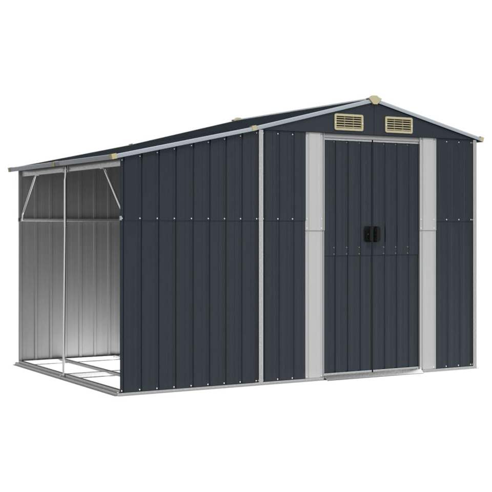 โรงเก็บของในสวนเหล็กชุบสังกะสีสีแอนทราไซต์ ขนาด 10x8 ฟุต โซลูชั่นการจัดเก็บระดับพรีเมียมสำหรับกลางแจ้ง