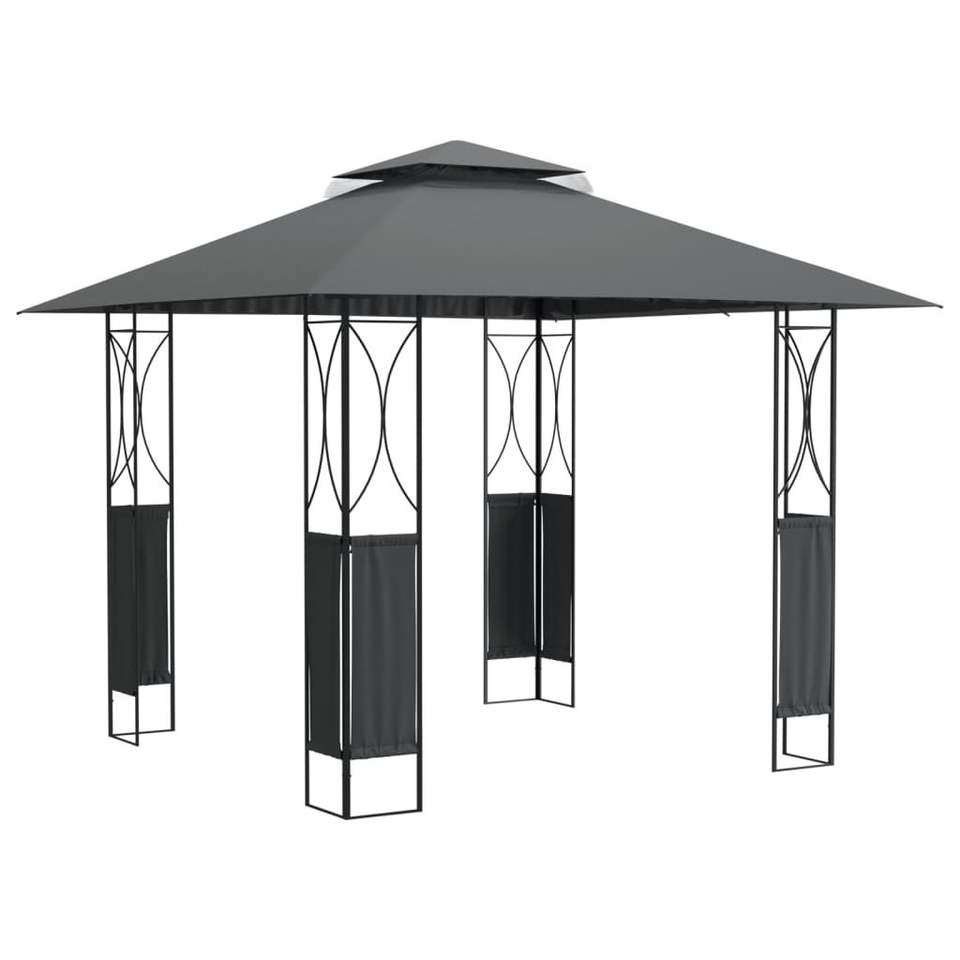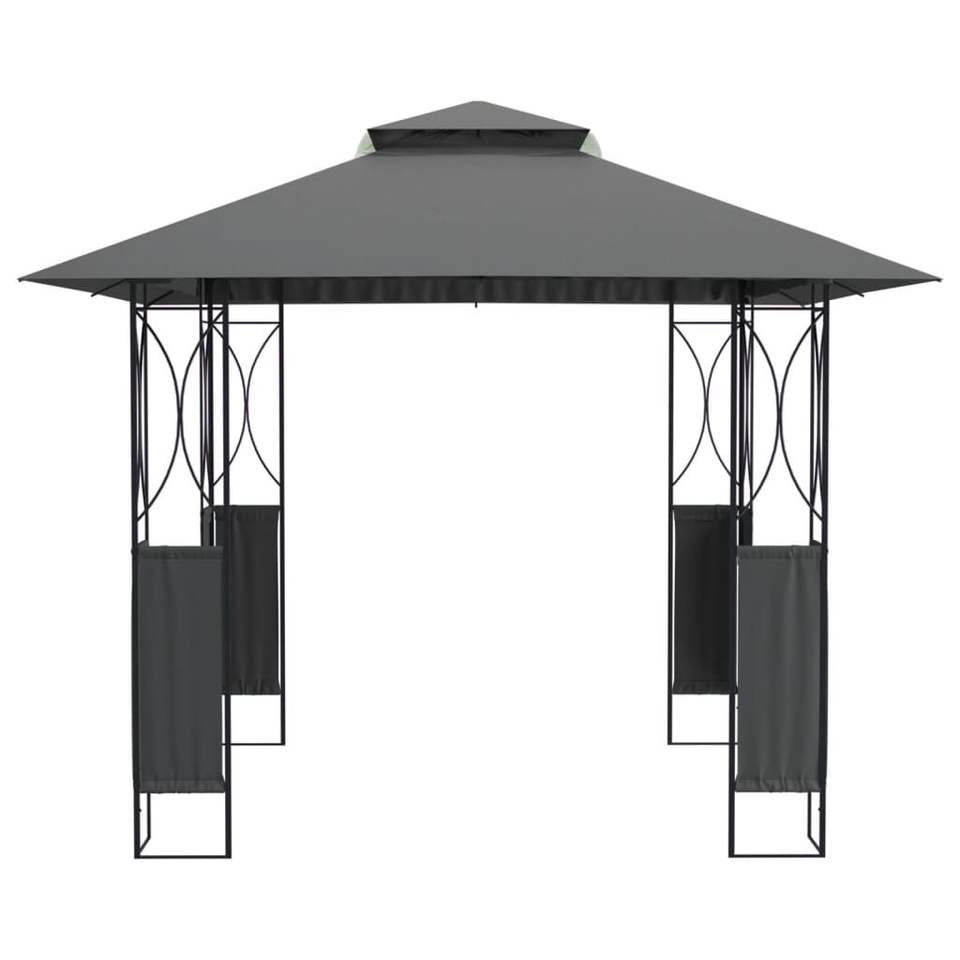 ศาลาโครงเหล็กแอนทราไซต์ขนาดใหญ่พร้อมหลังคาผ้าโพลีเอสเตอร์และซุ้มสินค้า