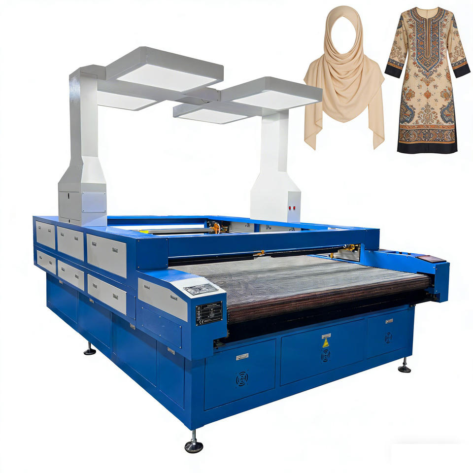 เครื่องตัดเลเซอร์ CO2 แบบหัวคู่ 2-in-1 พื้นที่ทำงานขนาดใหญ่ พร้อมระบบกล้องพาโนรามา สำหรับผ้าเดนิม ผ้าไหม และผ้าสังเคราะห์