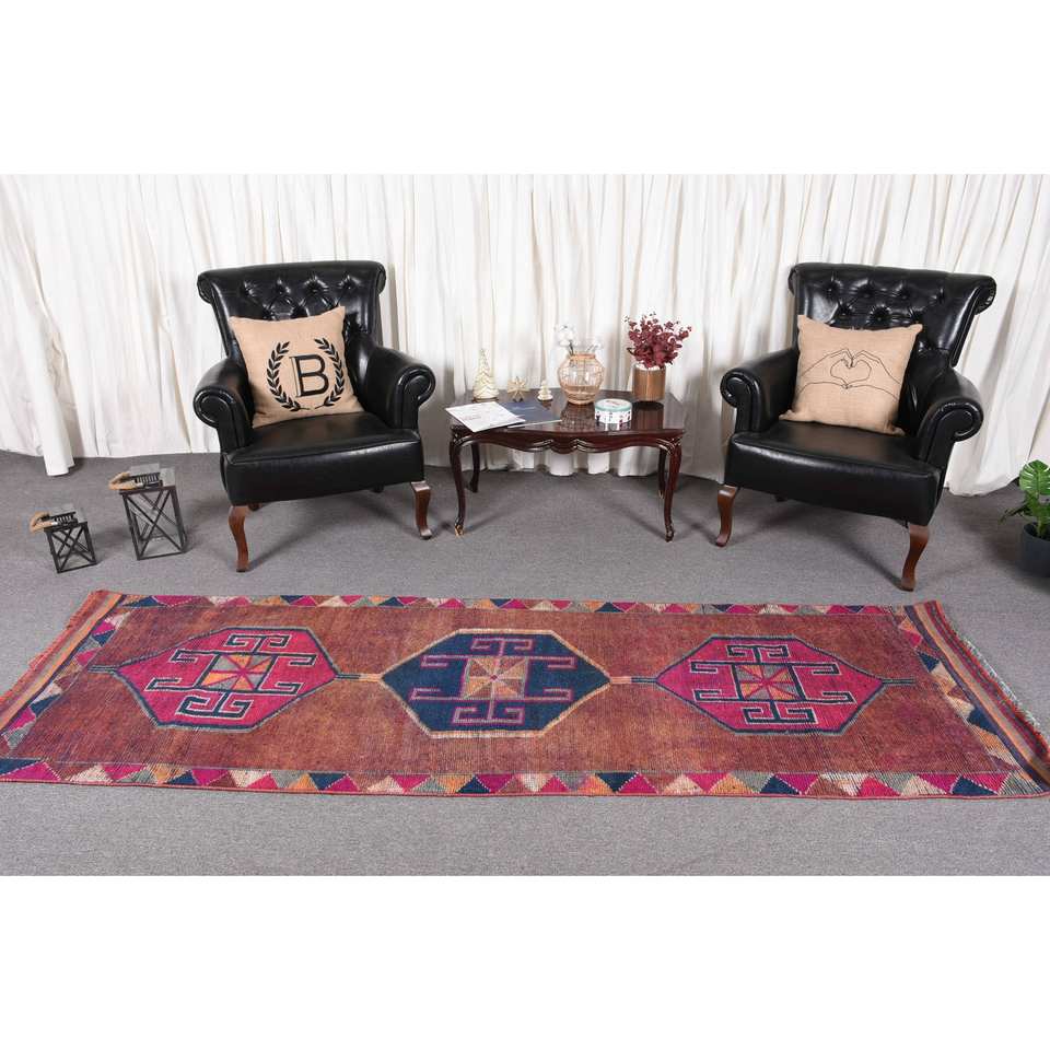 Kilim พรมขนแกะสีแดงสีน้ำเงินขนาด3.1 x 9.2ft แบนทอจากตุรกีกองยางพาราผ้ากำมะหยี่สำหรับห้องโถงห้องสี่เหลี่ยมผืนผ้า