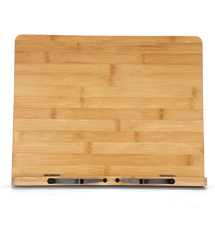 ที่ตั้งหนังสือไม้ไผ่ขนาดใหญ่พับได้ปรับได้พร้อมคลิปหนีบหน้าหนังสือ