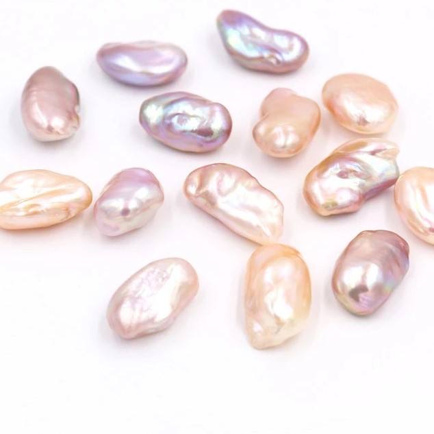 ลูกปัดมุกน้ำจืดธรรมชาติขนาดใหญ่สีชมพูหลากหลายสำหรับเครื่องประดับทำไข่มุกน้ำเค็มขนาดบาร็อค