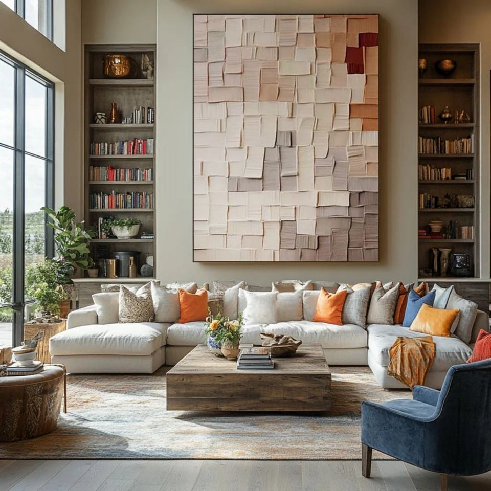 ภาพวาดศิลปะนามธรรมแนววาบิซาบิสีน้ำตาลเบจขนาดใหญ่ แนวตั้ง ทำด้วยมือจากอะคริลิก ภาพนิ่ง สำหรับตกแต่งผนังบ้านหรือแกลเลอรี่