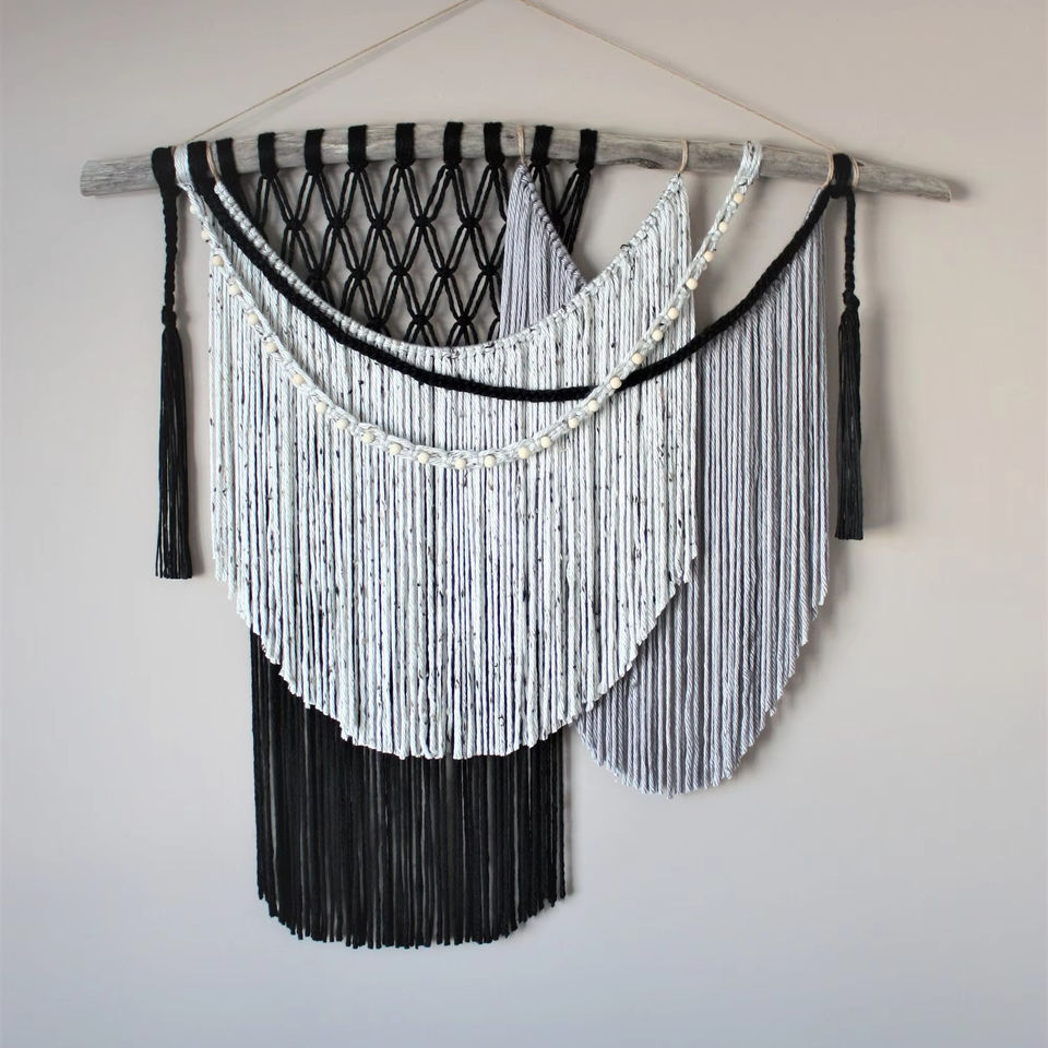 Rame สีเทาสีดำขนาดใหญ่สีเข้มกลาง Boho ห้องลูกปัด, แขวน, ตกแต่งผนัง