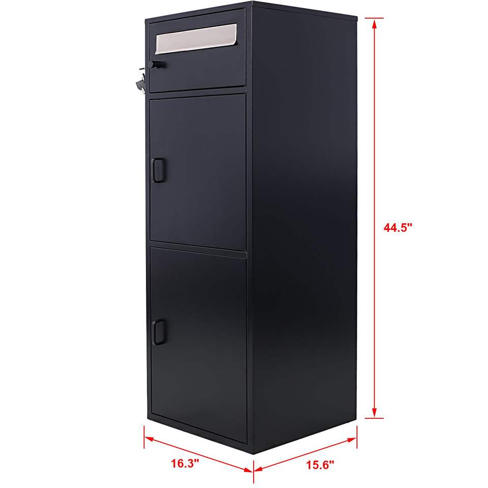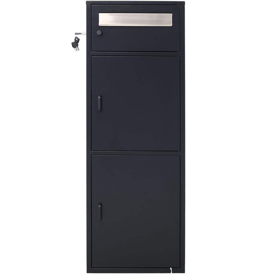 Large Black Steel Freestanding Floor Mailbox Parcel Package Drop with Locking Letterbox and Multi-Compartments