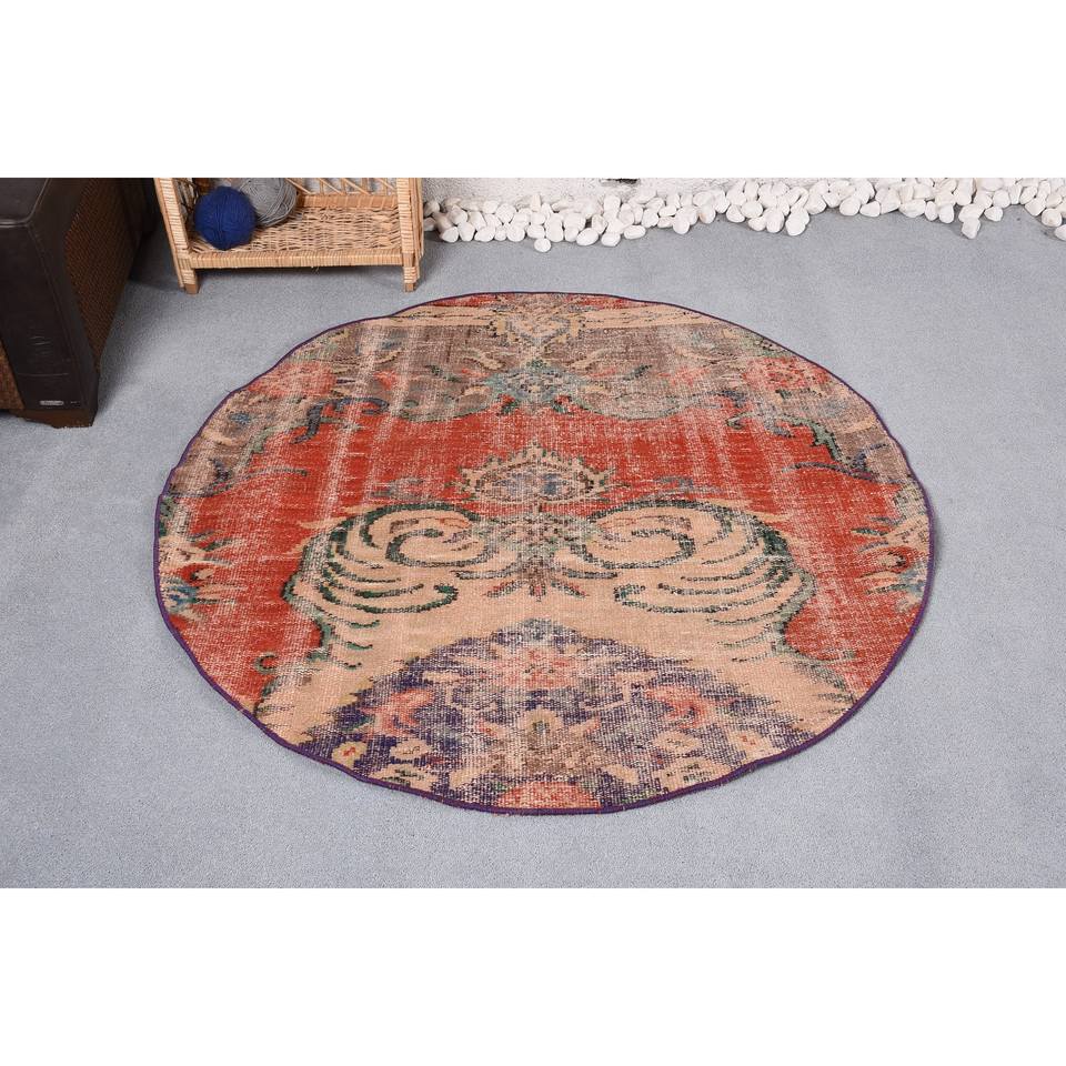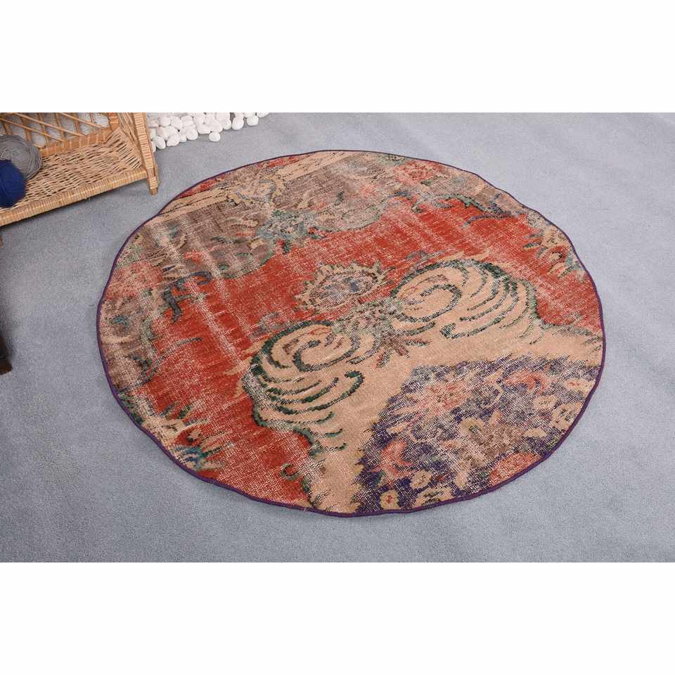 พรมขนแกะโบฮีเมียนขนาดใหญ่4.2 x 4.3ft ต่อลายสีแดงเบจสี่เหลี่ยมผืนผ้าสำหรับติดทางเดินทางเดินพรมยางปูพื้นด้านหลัง