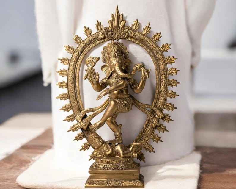 รูปปั้นพระพุทธรูปทองเหลืองขนาดใหญ่ | งานฝีมือโลหะศิลปะสมัยใหม่ทำมือ รูปเทพเจ้าแห่งโชคลาภฮินดู สำหรับตกแต่งบ้านและหิ้งพระ