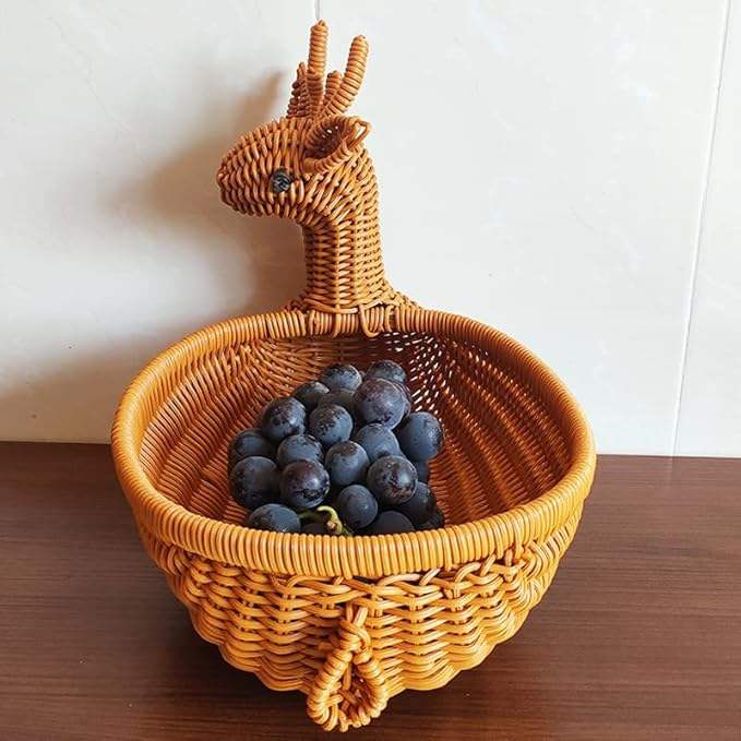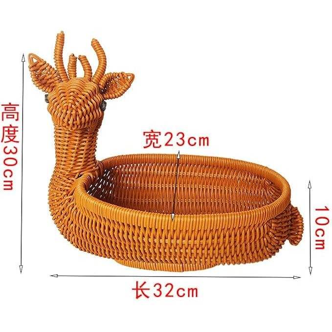 ตะกร้าผลไม้หวายสีน้ำตาลขนาดใหญ่ถาดใส่ขนมปังหญ้าทะเลสานทรงกระรอกและชามแสดง