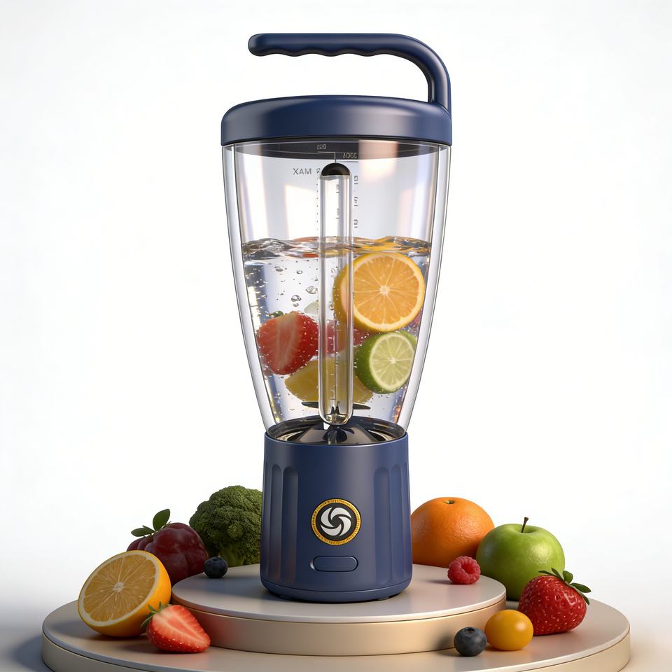 เครื่องปั่นพกพาขนาดใหญ่ 1 ลิตร, เครื่องคั้นน้ำผลไม้แบบชาร์จได้ 6 ใบมีด, ปลอดสาร BPA, ดีไซน์ไร้สายสำหรับการเดินทาง/ฟิตเนส/ตั้งแคมป์