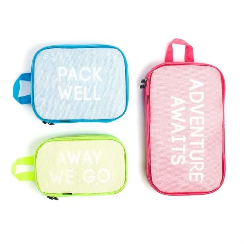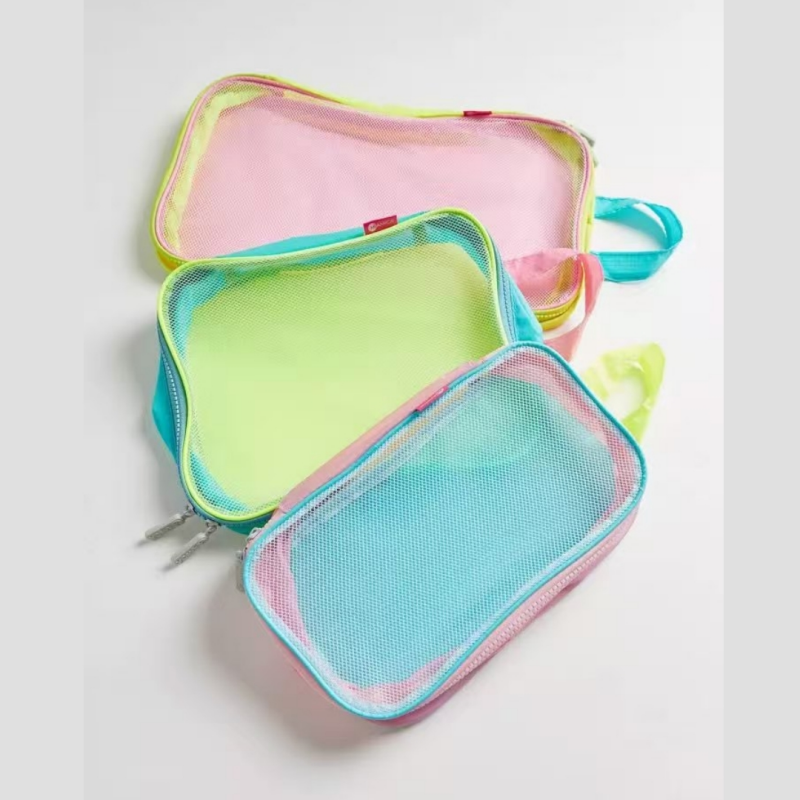 กระเป๋าเก็บของพับได้ทรงลูกบาศก์3ชิ้นความจุขนาดใหญ่กระเป๋าเก็บของทำจากไนลอนออกแบบโลโก้ได้ตามต้องการ
