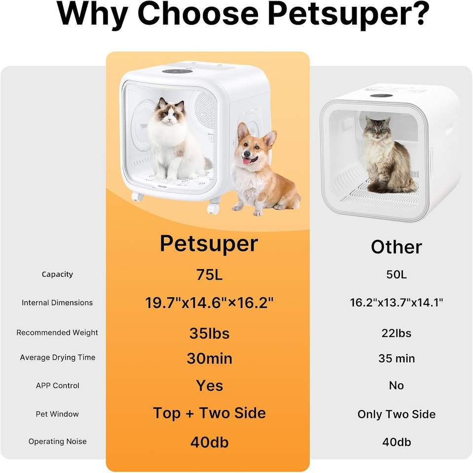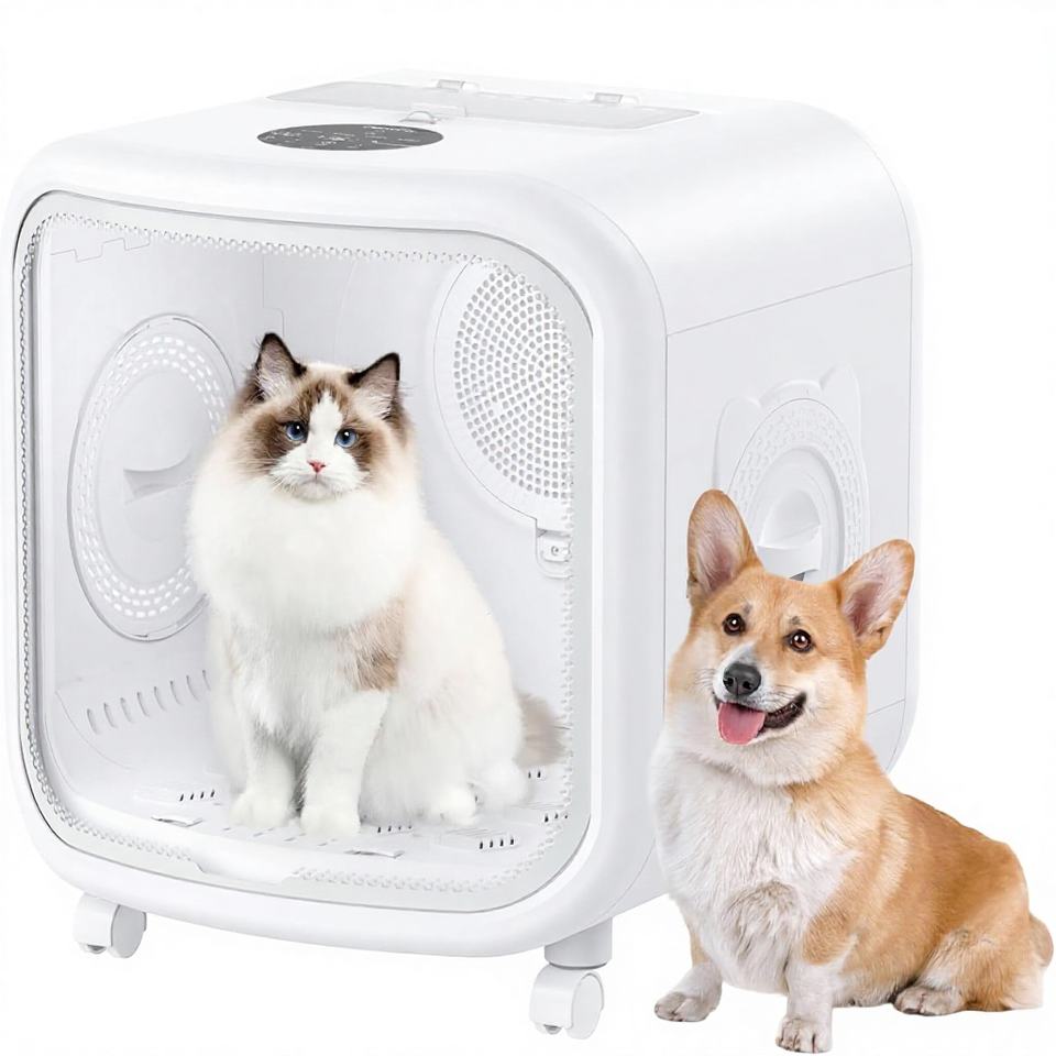 เครื่องอบแห้งสัตว์เลี้ยงอัตโนมัติแบบพกพา ความจุขนาดใหญ่ เป็นมิตรกับสิ่งแวดล้อม รูปทรงลูกบาศก์ สำหรับแมวและสุนัขขนาดเล็ก ควบคุมผ่านแอพ ทำงานเงียบพิเศษ ไม่ต้องใช้มือ