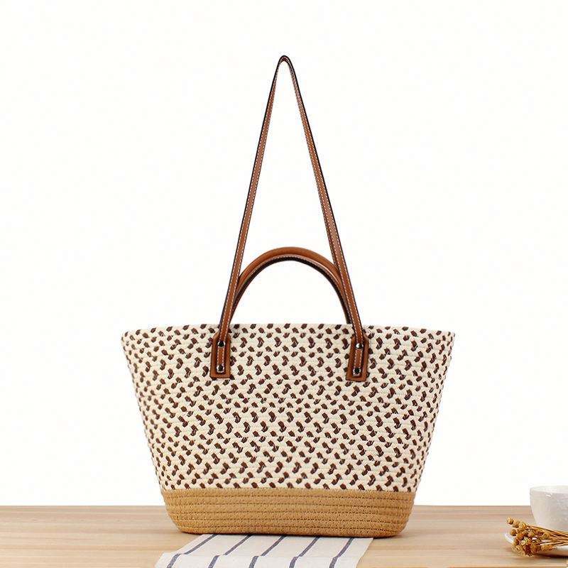 กระเป๋าโท้ทสานทรงโบฮีเมียนขนาดใหญ่สำหรับผู้หญิง เหมาะสำหรับใช้ไปทะเล วันหยุดพักผ่อนริมทะเล สไตล์ลำลอง