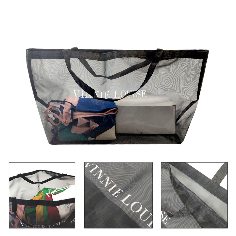 กระเป๋าตาข่ายใส่ของช้อปปิ้งขนาดใหญ่ สีดำ พับได้ ใช้เก็บของได้ ออกแบบเองได้ เหมาะสำหรับไปทะเล ชายหาด แฟชั่น