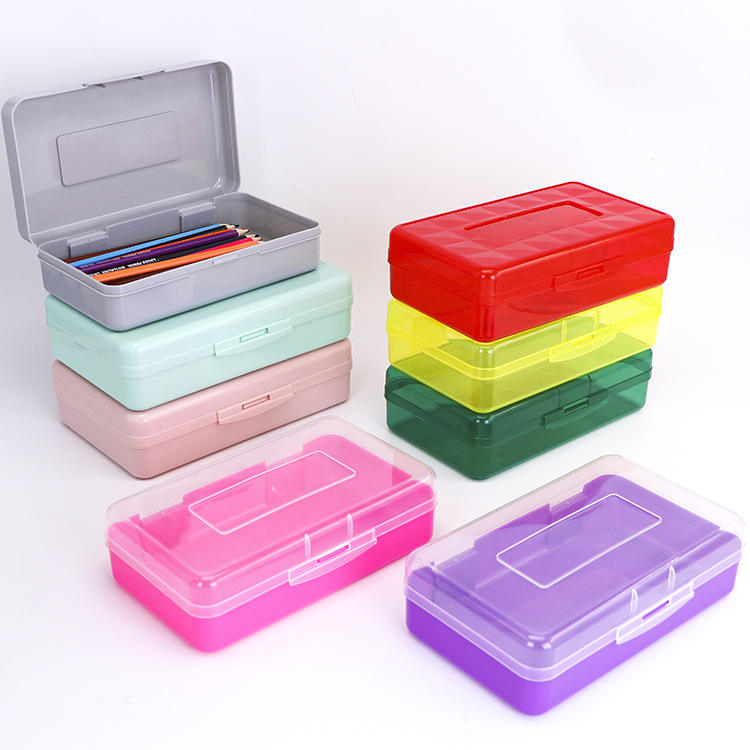 ความจุขนาดใหญ่ที่กําหนดเอง DIY พลาสติกแข็งดินสอเครื่องเขียนกล่องดินสอสําหรับพิมพ์โลโก้