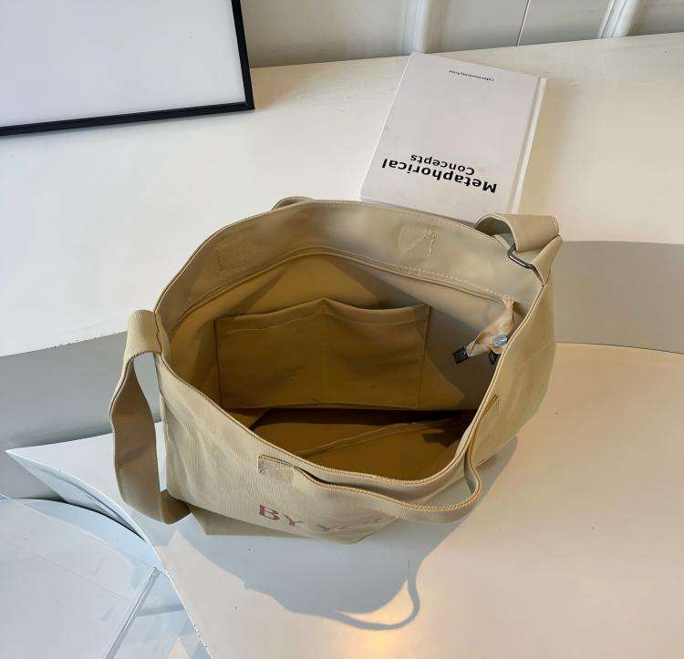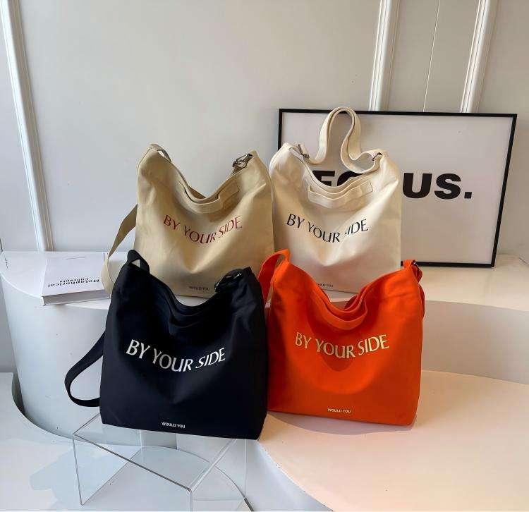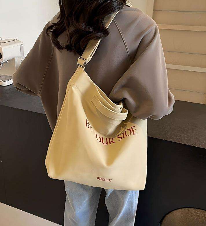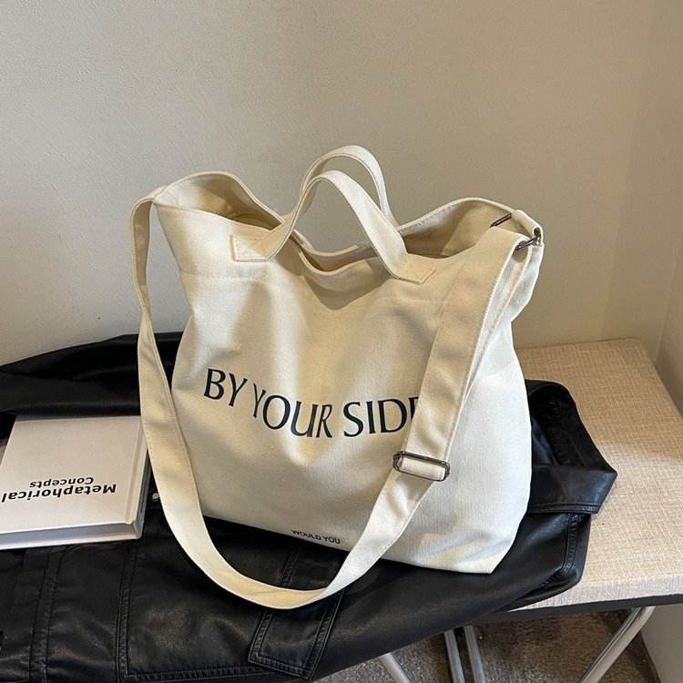 กระเป๋าผ้าแคนวาสสะพายไหล่ ดีไซน์เรียบง่าย ขนาดใหญ่ รับสกรีนโลโก้ สำหรับนักศึกษา