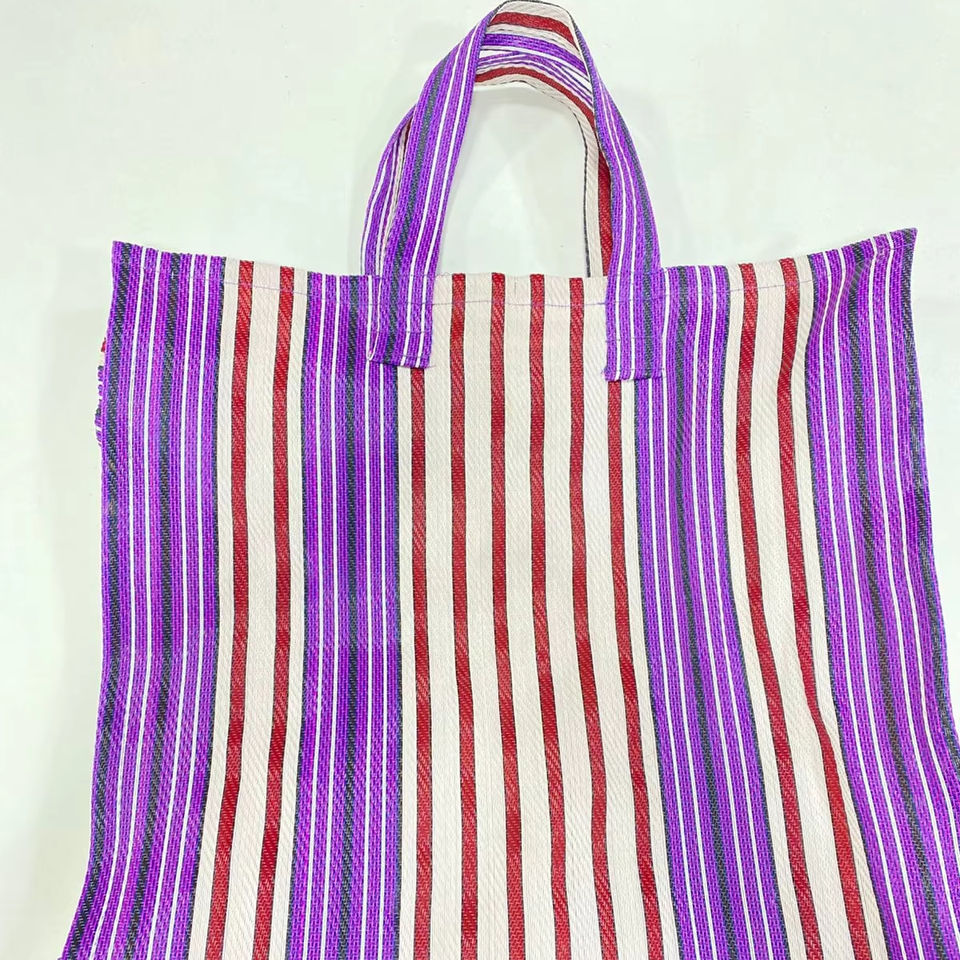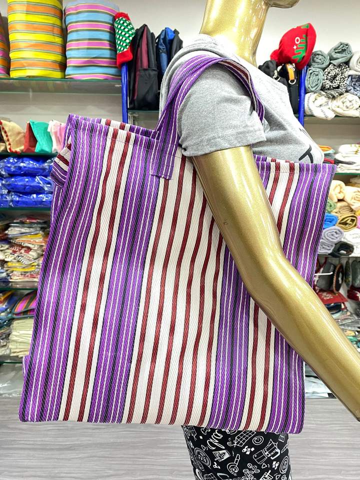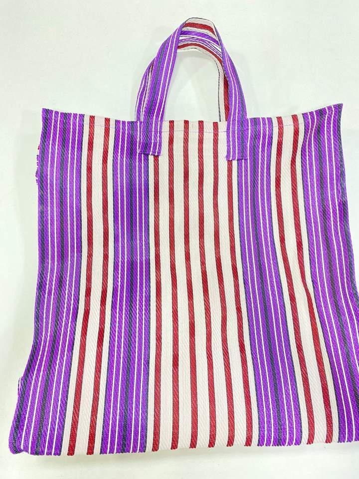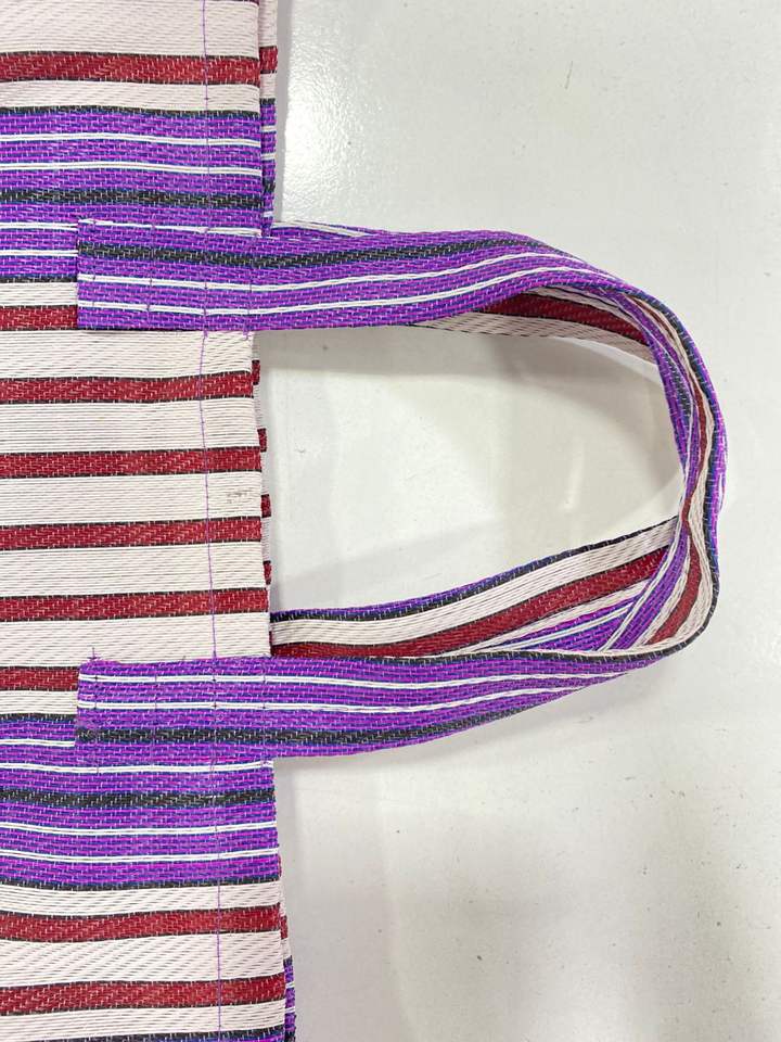 กระเป๋าช้อปปิ้งผ้าไนล่อนแบบใช้ซ้ำได้กระเป๋าชายหาดทำจากพลาสติกรีไซเคิลผ้าทอมือลายทางทำจากอินเดียเป็นมิตรต่อสิ่งแวดล้อมขนาดใหญ่