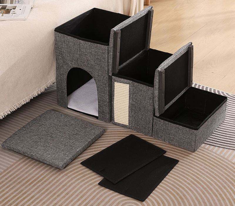 กล่องเก็บของแบบพลิกได้ขนาดใหญ่ บันไดสัตว์เลี้ยงแบบพับได้ 3 ขั้น พร้อมที่เก็บของแบบซ่อน