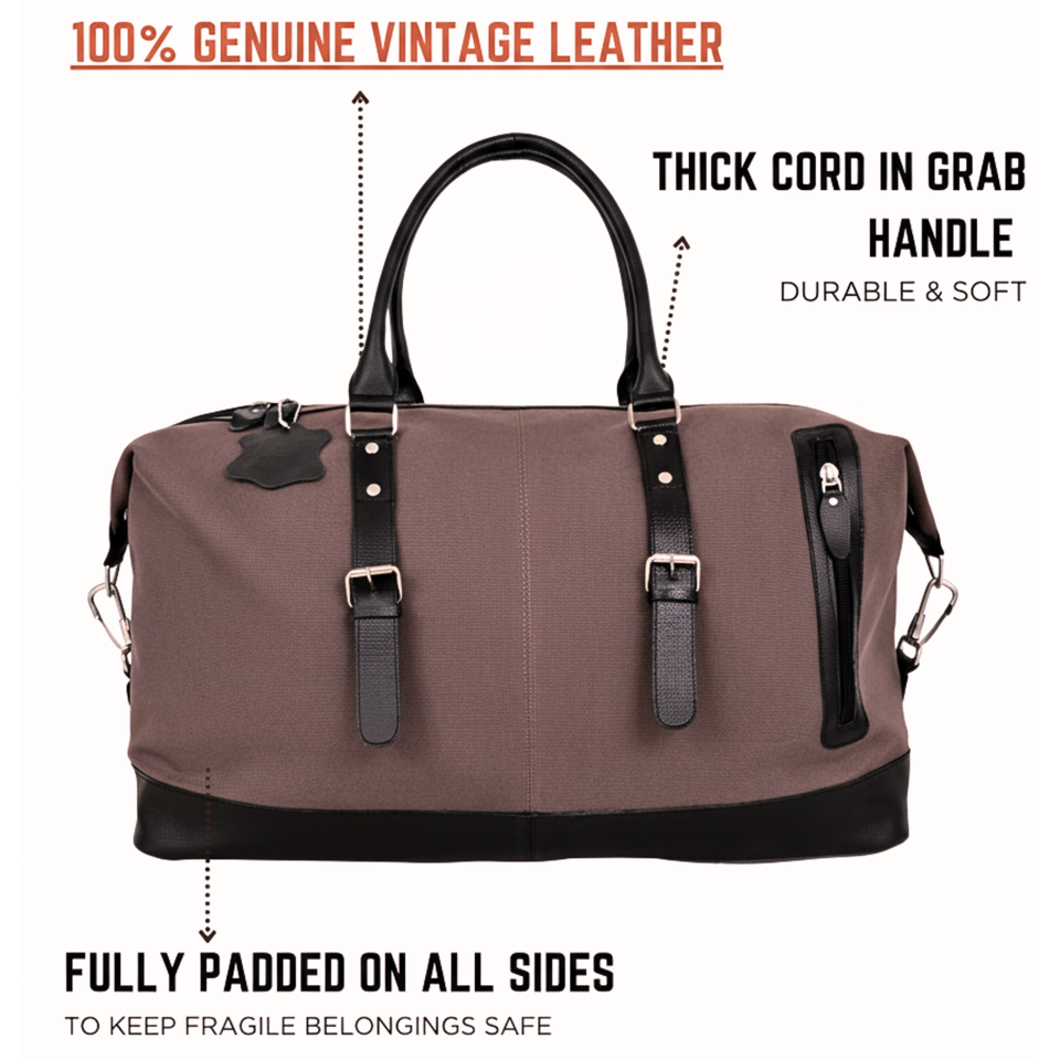 กระเป๋าเดินทางแบบพับได้ขนาดใหญ่ ผ้าแคนวาส โพลีเอสเตอร์ ซิปคุณภาพสูง สำหรับทุกเพศ ใช้ได้ทั้งเดินทางและวันหยุดสุดสัปดาห์ ตกแต่งด้วยหนังแท้
