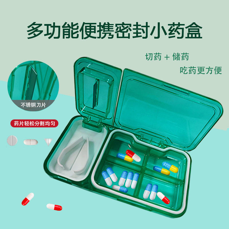 กล่องยาพกพาขนาดใหญ่สี่ช่อง กล่องเก็บยาสำหรับเดินทาง กล่องจ่ายยาพลาสติกกันน้ำ