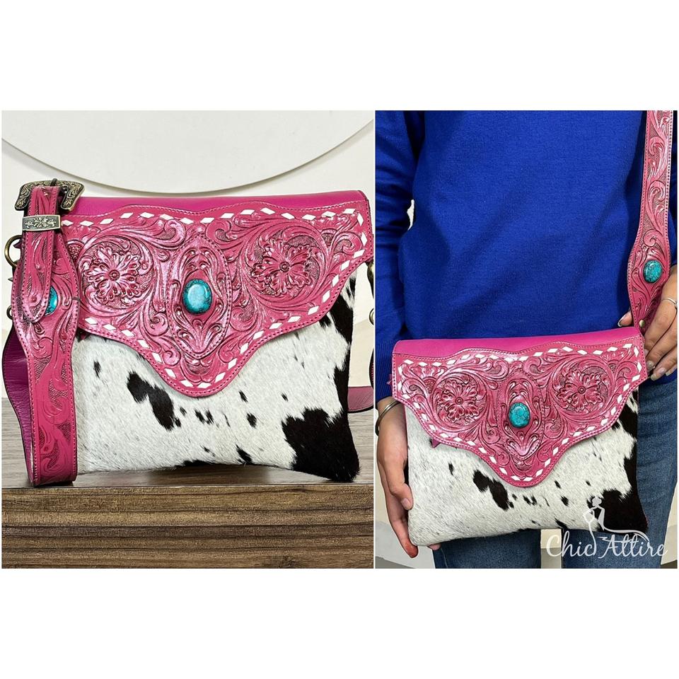 Hand Tooled Cowhide Leather Crossbody Bag