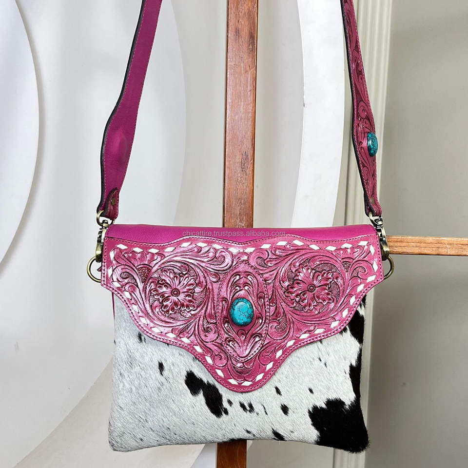 Product name:Hand Tooled Cowhide Leather Crossbody Bag