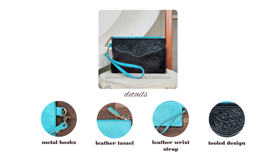 Product name:Hand Tooled Leather Wristlet Clucth