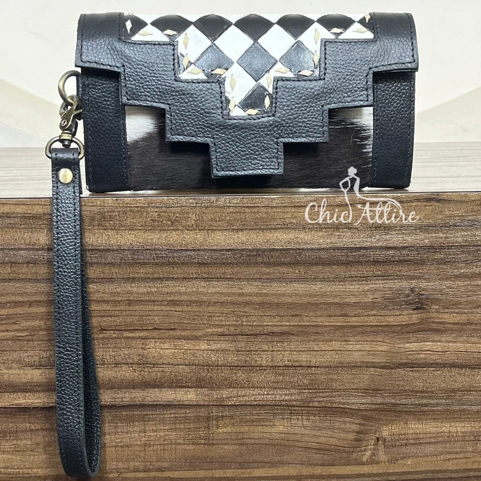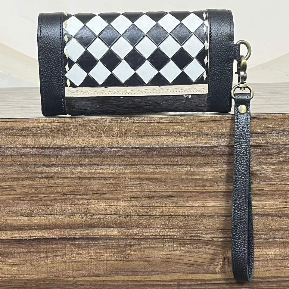 กระเป๋าคลัทช์หนังใส่ของสำหรับผู้หญิงกระเป๋าคลัทช์แบบมีช่องใส่ของหลายช่องลายลายตารางหมากรุก