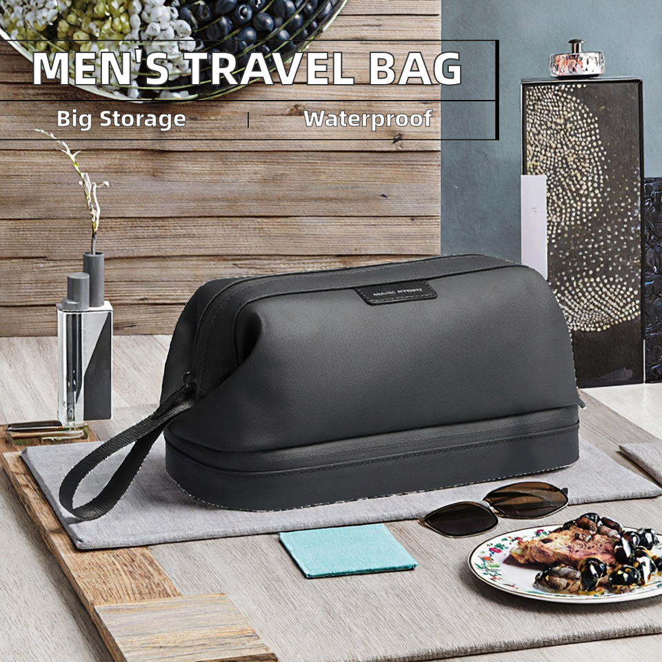 Medium Capacity Fashion Oxford Handheld Travel Grooming Bag for Men Dry Wet Separation Cosmetic Storage Case with Zipper Closure