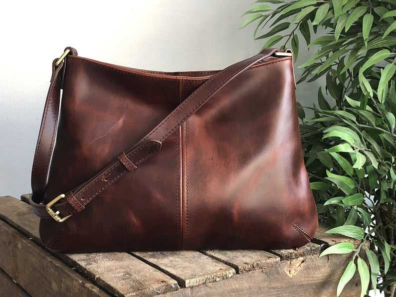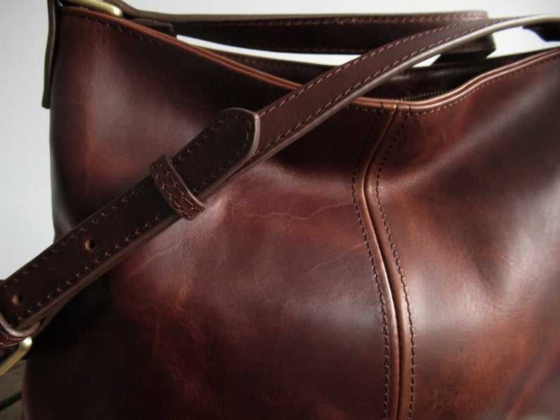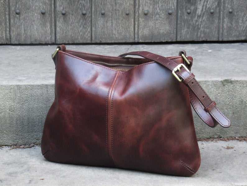 กระเป๋าโท้ทหนังแท้สีพื้นทำมือขนาดใหญ่สำหรับผู้หญิง ดีไซน์หูหิ้วพร้อมสายสะพายคู่แบบซิป