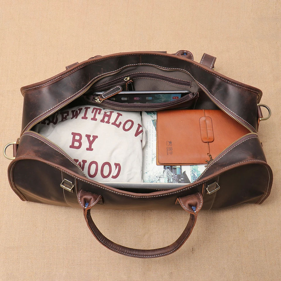 กระเป๋าทรงดัฟเฟิลกระเป๋าเดินทางสำหรับผู้ชายกระเป๋าหนังสำหรับผู้ชายความจุขนาดใหญ่สำหรับสุดสัปดาห์