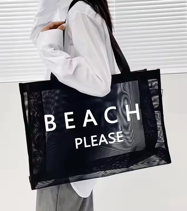 กระเป๋าช้อปปิ้งผ้าไนลอนตาข่ายความจุขนาดใหญ่กระเป๋าสะพายไหล่สำหรับใส่ผักผลไม้ตาข่ายสีดำแฟชั่นออกแบบโลโก้ได้ตามต้องการ