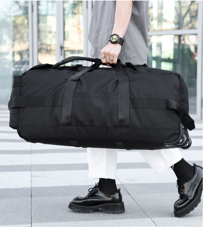 กระเป๋าเดินทางแบบมีล้อขนาดใหญ่ ทำจากไนลอน กันน้ำ เป็นมิตรกับสิ่งแวดล้อม เหมาะสำหรับเดินป่า ตั้งแคมป์ และพกพาสัมภาระ