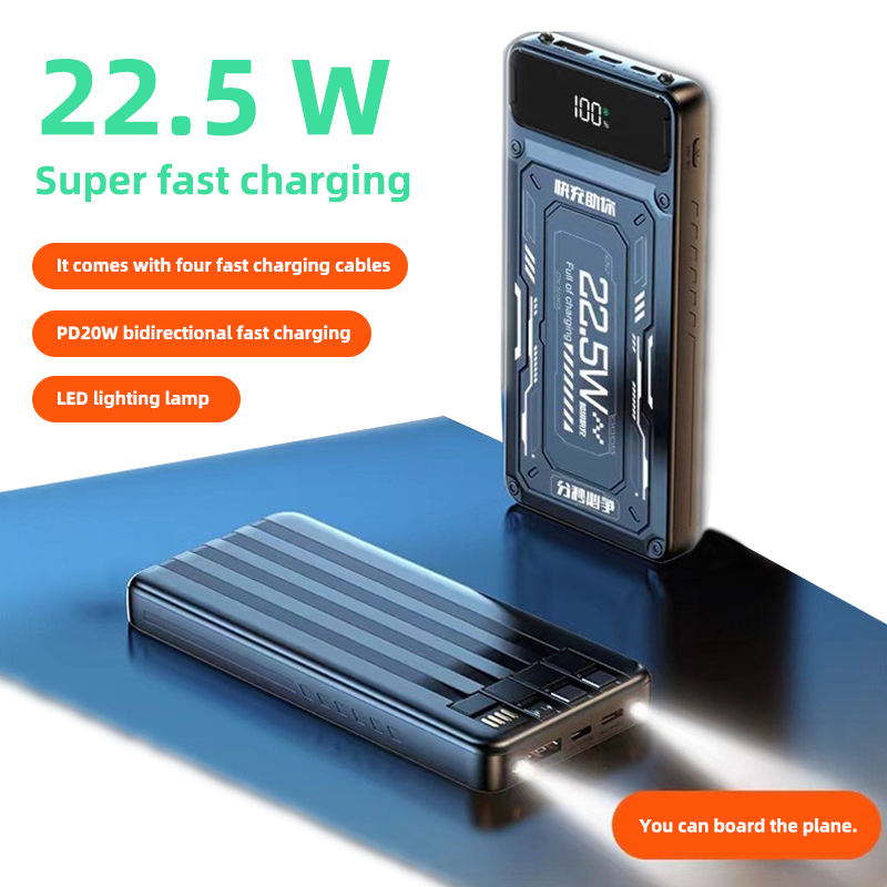 Large Capacity Quick Charge 22.5W Waterproof Digital Display Portable Promotional Power Bank 20000mAh Built-in Cable Type-C