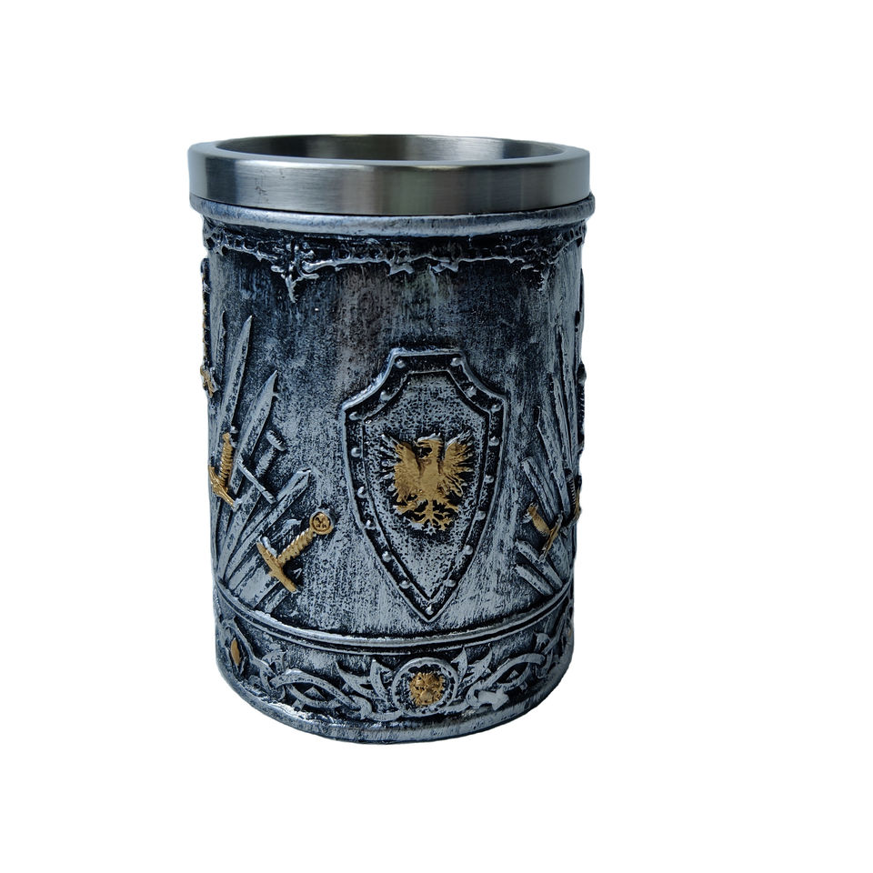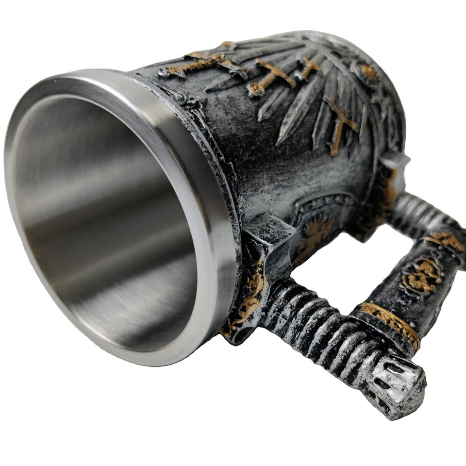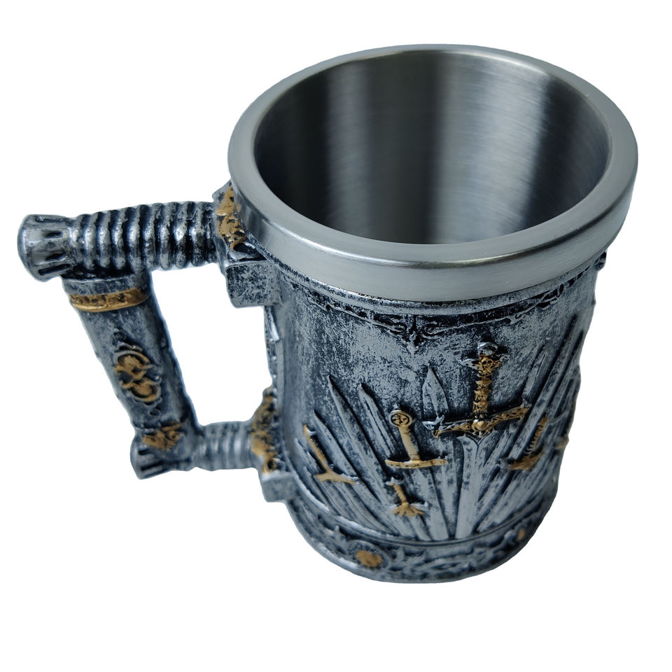 แก้วเบียร์ทำจากเรซินแก้วกาแฟสแตนเลสลายดาบอัศวินสำหรับเทศกาลคริสต์มาสความจุสูง