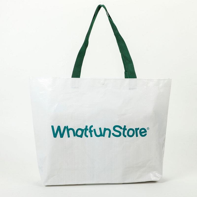 ถุงช้อปปิ้งและใส่ของชำแบบใช้ซ้ำได้ ขนาดใหญ่ ผลิตจากผ้า PP ทอ เป็นมิตรกับสิ่งแวดล้อม พร้อมพิมพ์โลโก้และลวดลายตัวอักษรตามสั่ง